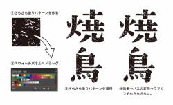 今回は、日頃 Adobe Illustratorを使ってメニュー表デザイン制作をしている方に、デザインの見映えがグッと高まる、簡単テクニックをご紹介します。第一回目は、大衆酒場やワインバルに似合うレトロ感のある「ざらざら文字」の作り方です。 ①ざらざら塗りパターンを作る 正方形のオブジェクトを作成します。その正方形の上に白のかすれたオブジェクトを乗せます。 ②スウォッチパネルへドラッグ 次に、①で作成したオブジェクトを選択した状態...