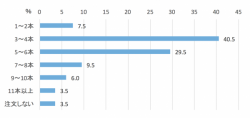 2018/01/13 焼き鳥は何本注文しますか? 居酒屋や焼き鳥屋で、焼き鳥を平均何本注文しますか? ※2017年9月 弊社調べ(男女 n=200) 月に1~3回程度居酒屋利用する方を対象 ●1~2本 7.5% ●3~4本 40.5% ●5~6本 29.5% ●7~8本 9.5% ●9~10本 6% ●11本以上 3.5% ●注文しない 3.5% 男女ともに3〜4本注文するのが最も多い。前回調査したおつまみの平均注文数では、男性の方が多く注文する傾向にありましたが、焼き鳥の注...